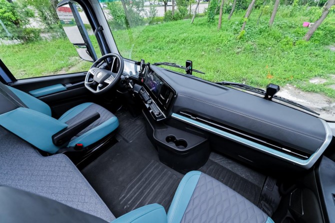 针对中长途卡友 “以车为家” 的核心需求,欧航 H 系列在舒适性与可靠性上实现了双重突破,让中长途运输从 “勉强支撑” 变为 “舒适享受”。2350mm 超宽车身搭配纯平地板设计,使驾驶室内部净高达 1930mm,95% 的成年人可在车内直立行走,活动空间大幅提升;1200mm 超宽卧铺搭配高密度海绵床垫,配合 440L 大容量储物空间,满足卡友休息与储物需求,再加上自动恒温空调、多媒体娱乐系统的加持,将驾驶室升级为兼具实用性与舒适性的 “移动生活舱”。而怠速静谧性表现与 6 向气囊减震座椅,更能有效过滤路面颠簸、隔绝外界噪音,显著降低长时间驾驶带来的疲劳感。在可靠性方面,欧航 H 系列历经高温、高寒、高原的 “三高” 环境验证与等效百万公里强化耐久测试,1500MPa 热成型钢车身(高强钢占比 62%)通过欧盟 ECE R29-03 碰撞认证,核心部件均源自全球一流供应商体系,再加上发动机 10 万公里、变速箱 24 万公里的长周期保养间隔,大幅降低了车辆维修频次与停运时间,彻底解决了卡友 “怕故障、常维修” 的后顾之忧。