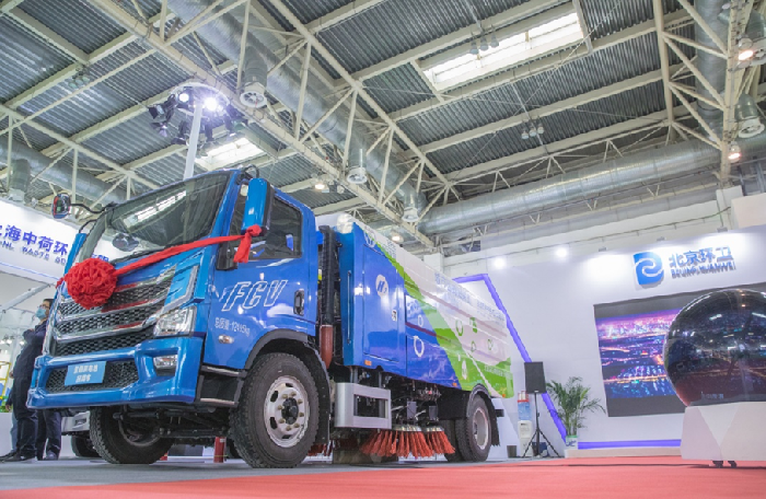 博览会现场展出的氢燃料电池扫路车和压缩式垃圾车由北京环卫集团旗下京环装备公司制造,共有两种,其中一款为扫路车,配装4个储氢罐,另一款为压缩式垃圾车,配装6个储氢罐,有效储氢量为22.2kg,加满氢气过程最短仅需3-5分钟。与纯电动环卫车相比,氢燃料电池环卫车至少节约4小时充电时间,补给周期大幅缩短,优势明显。据了解,两款环卫车将为2022年张家口冬奥会提供环境保障服务。