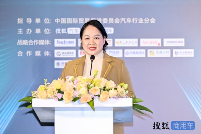 中国国际贸易促进委员会汽车行业分会副会长杨琳到场致开幕词,她分享到2023商用车全年销量有望达到400万辆,同比增长约21.2%。她说:“我国商用车行业的发展与经济大环境以及政策、法规密切相关,全行业正处于走出低谷、爬坡向上的关键期。” 她指出,从高质量发展的角度来看,商用车行业需要做到四个坚持:坚持“双碳”引领的绿色发展战略定力、坚持创新为本的自主可控发展、坚持稳扎稳打立足长远实现“走出去”、坚持需求导向的行业转型升级。