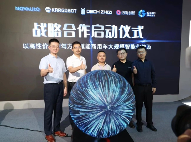 站在物流运输行业智能化变革的关键点上,质子汽车在本次活动现场,联合佑驾创新、卡尔动力、绿电智联、超星未来等智驾领域的代表企业共同启动战略合作,携手共创商用车智能运输新生态。