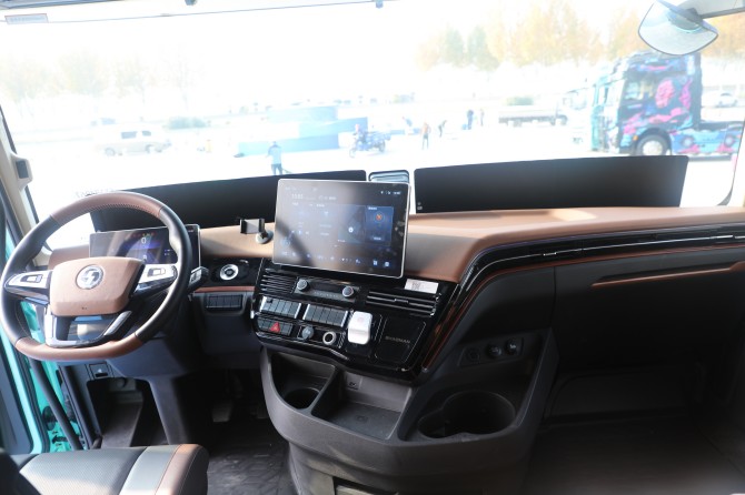 驾乘舒适性方面,新车采用高顶纯平地板驾驶室布局,内部空间宽敞通透;主驾配备多功能气囊减震座椅,支持通风、加热、多向电动调节与腰托支撑,长效缓解长途驾驶疲劳;超宽1.1米卧铺搭配整车隔音降噪技术,打造移动休憩空间;多处人性化储物与快充设计,全面满足长途运营需求。此外,车辆通过超大油箱或LNG液瓶可实现更长续航,为干线物流提供可靠保障。