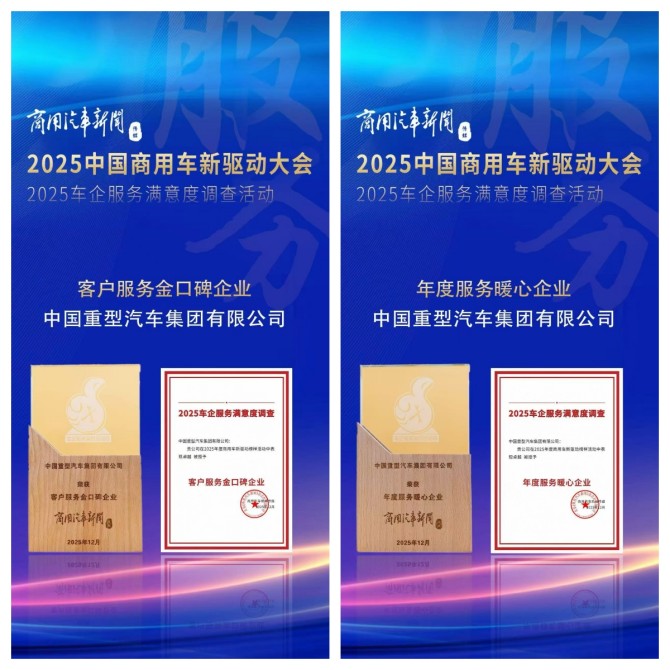 在商用车行业从产品驱动迈向价值驱动的关键期,企业服务的深度与温度,正成为衡量品牌高度的核心标尺。近日,中国重汽在2025年度商用车新驱动榜样活动中连续斩获“客户服务金口碑企业”和“年度服务暖心企业”两项殊荣。这是行业对其卓越服务体系的权威认证,更是万千卡友的口碑加持与信赖托付。中国重汽不仅为客户创造了可量化、可感知的理性价值,更将其升华为有质感、有回响的温度。